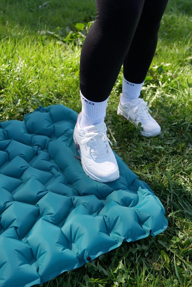 Thanks to the built-in foot pump, your Lounge Mat is fully inflated in about 30 seconds. No out-of-breath blowing and no bulky extra pumps to carry—just step on it and start relaxing instantly.